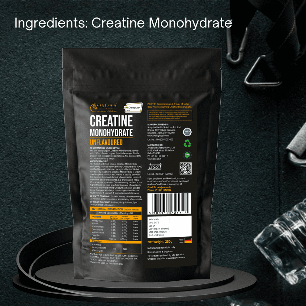 Unlock your fitness potential with OSOAA Creapure®, a premium German-certified creatine monohydrate designed for serious athletes and fitness enthusiasts in Kolkata. Trusted worldwide for its absolute purity and potent performance benefits, this micronized creatine monohydrate offers rapid absorption and easy mixing with water, juices, or protein shakes.